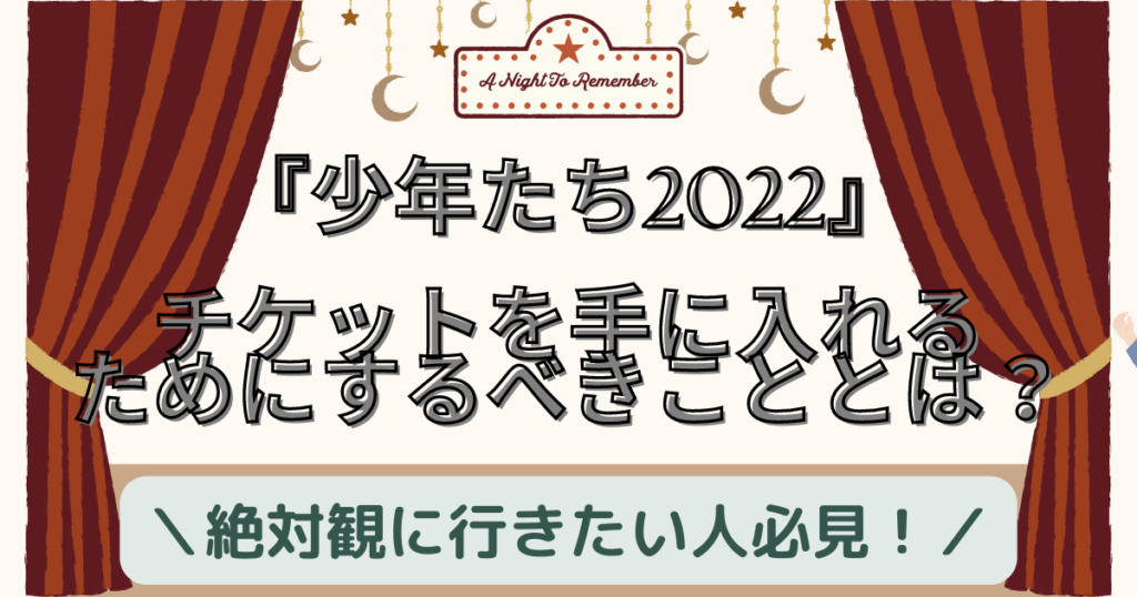 【全滅民が次にするべきことはコレ!】『少年たち2022』のチケットを手に入れるための行動指針◎