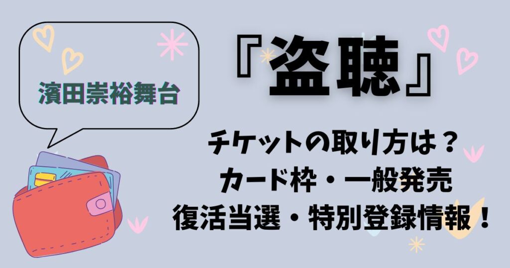 『盗聴』濱田崇裕舞台チケットの取り方は?カード枠・一般発売・復活当選・特別登録情報!