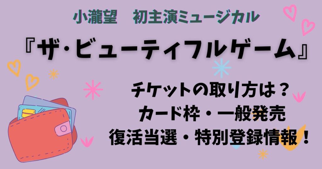 『ザ・ビューティフルゲーム』舞台チケット取り方は?カード枠・一般発売・特別登録の情報まとめ【小瀧望ミュージカル】
