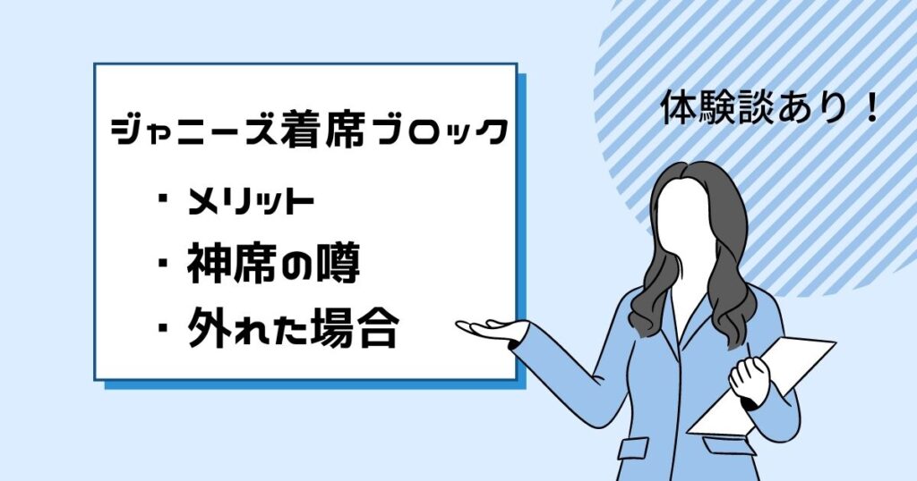春から多くのジャニーズグループがツアーをスタートさせますね!ジャニーズのコンサートでは、着席ブロックという特別な席があります。 着席ブロックは、ステージに近くてメンバーとの距離が近いというメリットがありますが、抽選で当たるかどうかは運次第...